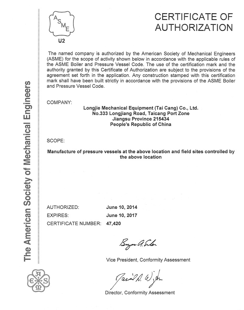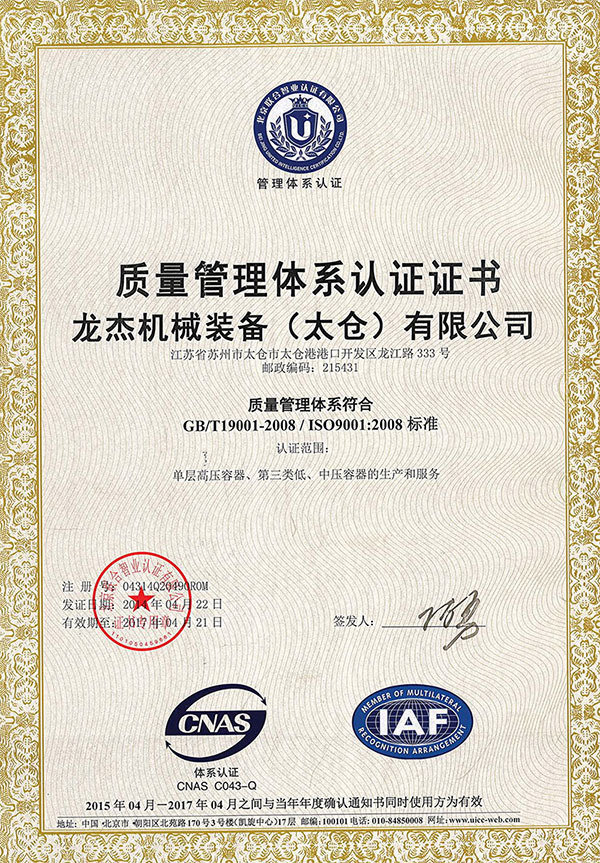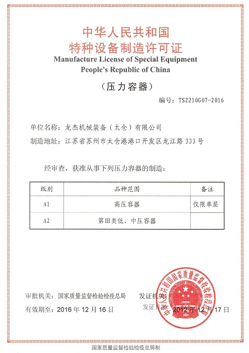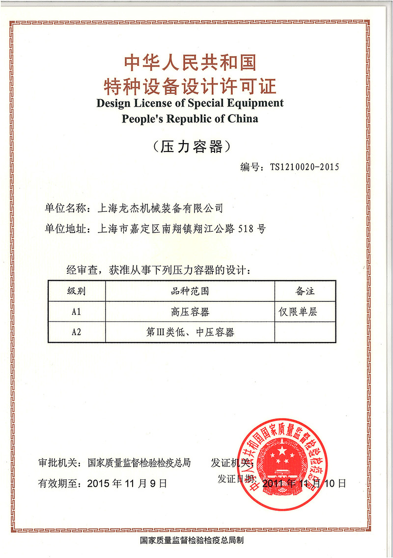 上海龍杰機械裝備有限公司是國家認證頒發(fā)的一、二、三類(A1、A2)高壓非標容器和美國ASME設(shè)計、制造企業(yè),也是中石油、中石化定點的石油、化工裝備的制造基地。