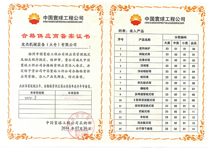 龍杰機械先后為中石油、中石化、中海油、神華寧煤、中煤集團、國家能源集團、煙臺萬華集團、恒力石化、恒逸石化、永榮集團、晉煤集團、心連心化工集團、昊源化工、浙石化、裕龍石化等知名企業(yè)的煤制氣、煤制烯烴、煤制乙二醇、煤制芳烴、聚乙烯、聚丙烯、環(huán)己酮、己內(nèi)酰胺、合成氨、尿素、變換、凈化、脫硫、甲醇、二甲基亞砜、硫酸、硝酸、硝銨等項目(裝置)成功提供了多臺主體換熱器、各類塔器、反應(yīng)器等過程裝備。